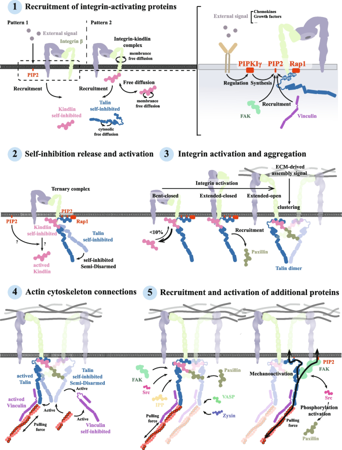 ),受Rap1 GTP酶、磷脂酰肌醇4,5-二磷酸(PIP2)等分子调控。