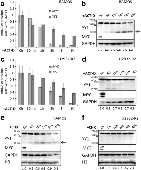 实验所用关键产品:Sigma-Aldrich的放线菌素D、环己酰亚胺,Abcam的YY1单克隆抗体(货号ab109237)、MYC单克隆抗体(货号ab32072)、GAPDH单克隆抗体(货号ab8245)。