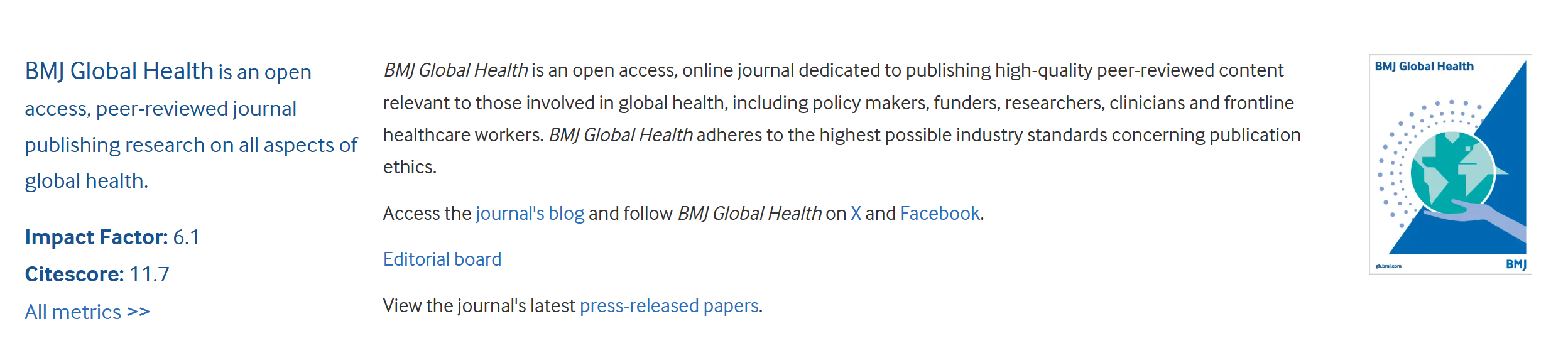 点击查看:Bmj Global Health最新影响因子与分区