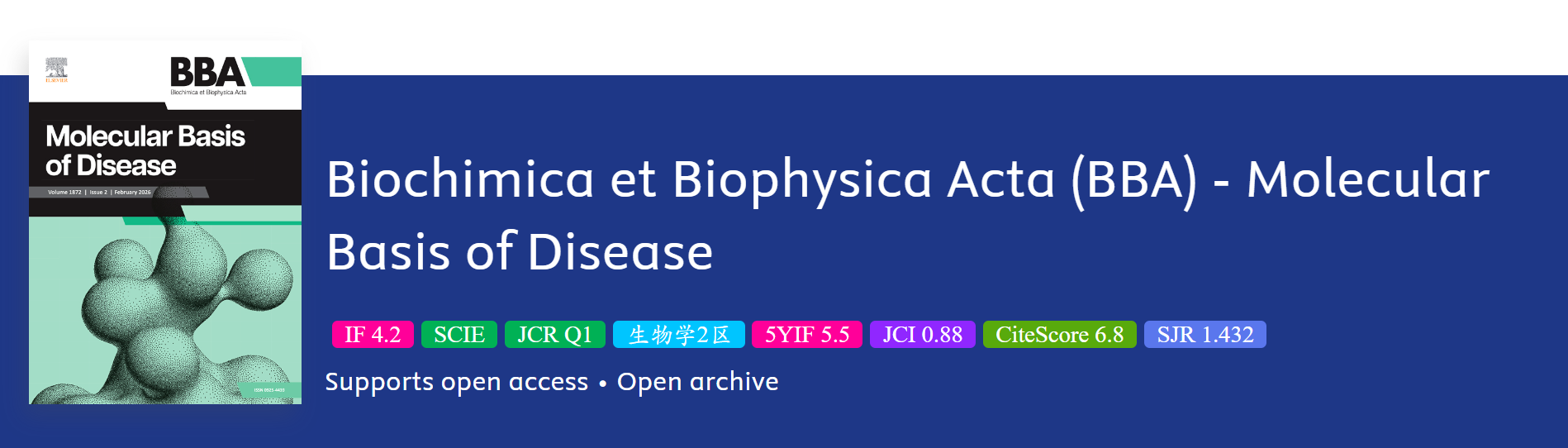 2024-2025年疾病分子机制领域聚焦多组学整合解析复杂疾病网络(如单细胞空间转录组揭示肿瘤微环境异质性)和靶向治疗耐药机制(如KRAS突变肺癌的逃逸通路),投稿痛点集中在机制深度不足(42%拒稿源于缺乏体内验证数据)和转化意义模糊^Nature Portfolio 2025^。《Biochimica et Biophysica Acta-Molecular Basis of Disease》(简称BBA-MBD)由Elsevier主办,创刊于1973年,是国际生物化学与分子生物学领域历史悠久的专业期刊,核心定位为发表疾病发生发展的分子与细胞机制原创研究,尤其关注基础研究向临床转化的桥梁性工作(如新型生物标志物验证、药物靶点功能解析)。该期刊非Mega Journal,2024年发文量为1186篇,平均审稿周期较2023年缩短12%,体现其对优质稿件的处理效率提升。