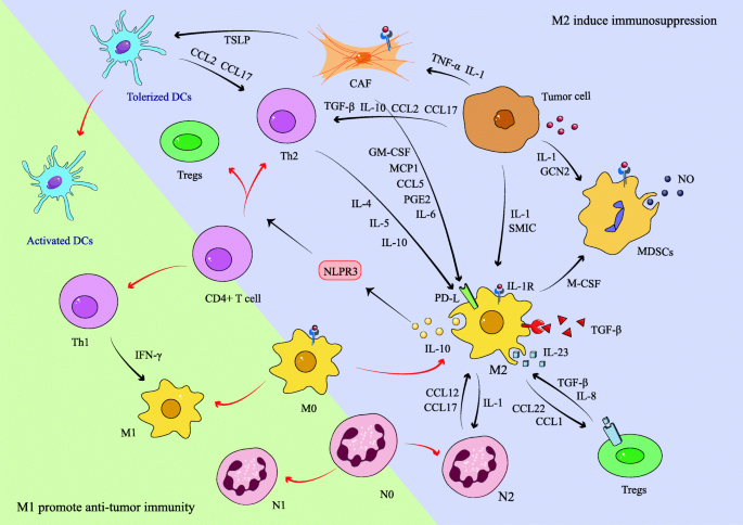 - 对TAMs与TANs的互作机制尚不清楚,部分结果矛盾(如TANs对肿瘤生长的影响因类型而异);