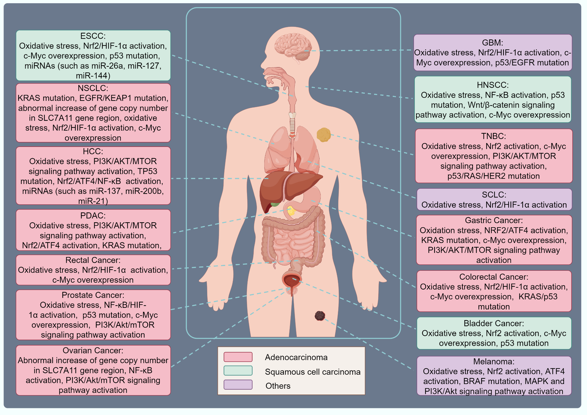 (SLC7A11在不同肿瘤中的表达及机制图)
