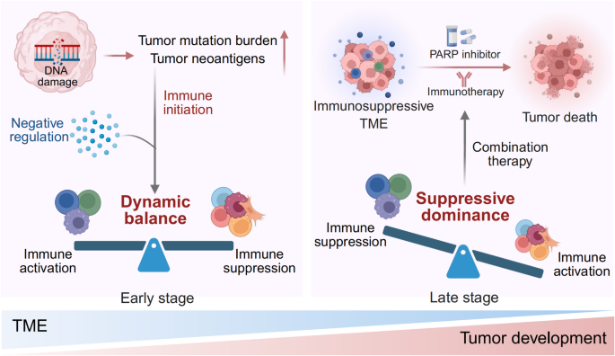 (Fig4:HRD癌症联合治疗的临床意义,展示免疫激活与抑制的平衡及联合治疗的策略)