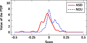 (图2:多变量FDA得分分布,ASD与NEU群体仍有明显重叠)