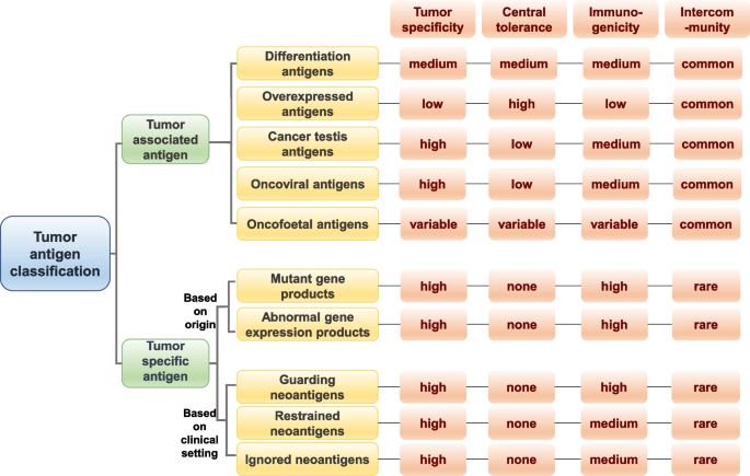 方法细节:回顾经典分类(TAAs vs TSAs),结合最新研究扩展TSAs的临床分类(Guardian/Restrained/Ignored),通过文献梳理TAAs的表达模式(如CTAs仅在睾丸表达)与TSAs的来源(如黑色素瘤的BRAF突变)。