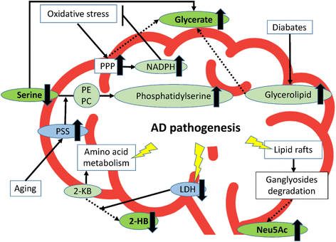 核心成果提炼:功能关联方面,4种代谢物均与AD的病理机制密切相关:(1)甘油酸:参与戊糖磷酸途径(PPP)、氨基酸代谢(丝氨酸降解)与甘油脂代谢——PPP是脑内生成NADPH的关键通路,AD早期氧化应激激活PPP,导致甘油酸积累;丝氨酸降解生成甘油酸,AD患者丝氨酸降低可能由于磷脂酰丝氨酸合酶(PSS)激活(将丝氨酸掺入磷脂酰丝氨酸,发挥神经保护作用),间接导致甘油酸升高。(2)丝氨酸:AD患者CSF中丝氨酸降低,可能与PSS激活或D-丝氨酸生成增加(淀粉样蛋白寡聚体激活丝氨酸消旋酶,将L-丝氨酸转化为D-丝氨酸)有关。(3)Neu5Ac:是神经节苷脂的核心成分,AD患者脑内神经节苷脂降解增加(脂质筏结构破坏),导致Neu5Ac释放至CSF中。(4)2-HB:由2-酮丁酸经乳酸脱氢酶(LDH)还原生成,AD模型小鼠脑内LDH表达降低,导致2-HB生成减少。创新性方面,本研究首次在日本队列中发现这4种代谢物可作为AD与iNPH的鉴别标志物,且其组合的鉴别能力与现有AD生物标志物p-tau相当(AUC=0.90 vs p-tau的AUC=0.94),为AD的精准诊断提供了新的代谢组学工具。统计学结果:多因素logistic回归显示4种代谢物的回归系数均具有统计显著性(P<0.05);ROC分析显示组合标志物的AUC=0.90(P<0.05),表明其鉴别性能良好。
