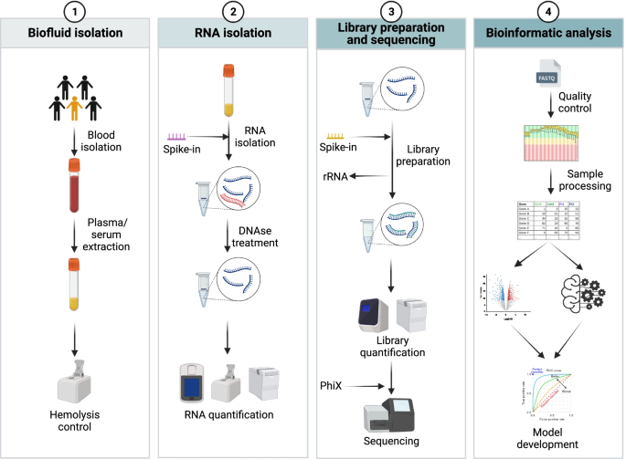 (cfRNA生物标志物开发的步骤流程图:从样本处理到生物信息分析的全流程质控与优化)