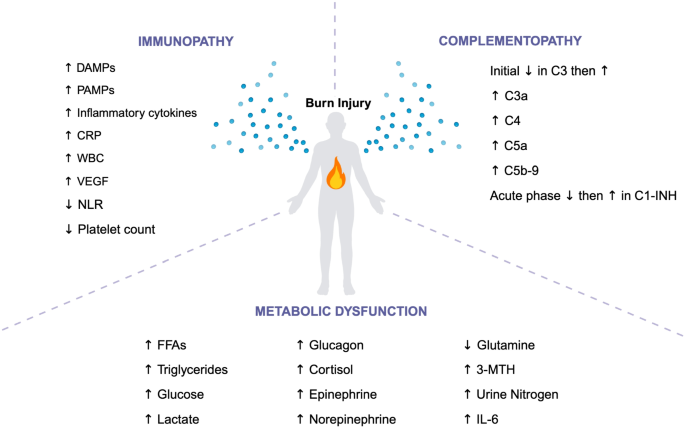 (图1:烧伤诱导免疫病、补体病、代谢紊乱的生物标志物变化总结)