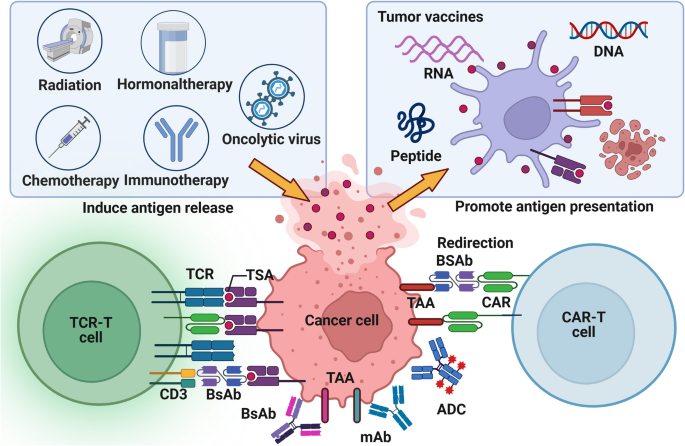 方法细节:回顾肿瘤疫苗(如DC疫苗、mRNA疫苗)、过继细胞治疗(CAR-T、TCR-T)、免疫检查点治疗(ICIs)的临床研究。
