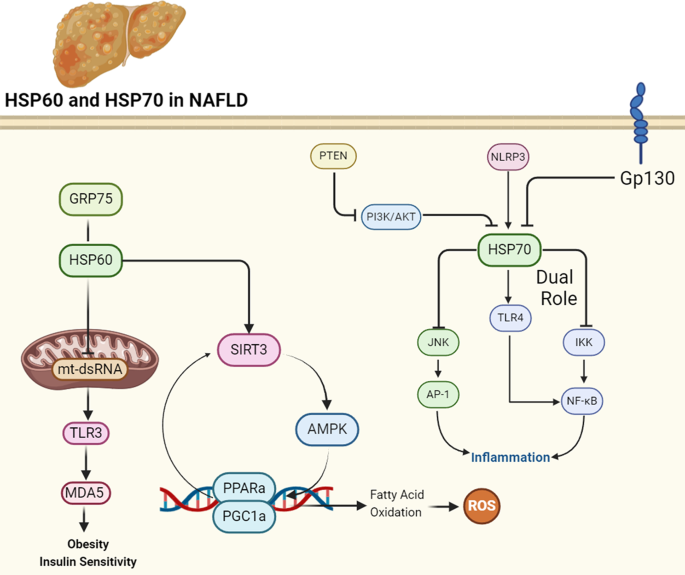 Fig 2:HSP60、HSP70在NAFLD中的调控作用