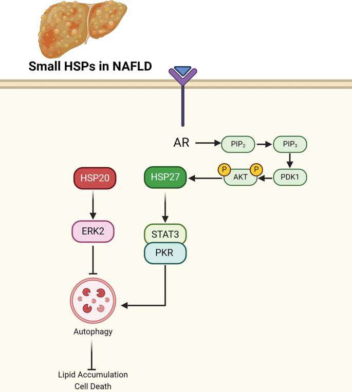 Fig 1:小HSPs(HSP20、HSP27)在NAFLD中的作用机制