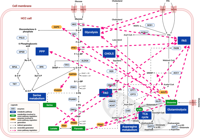 结果解读:代谢通路串扰增强了肝癌细胞的代谢可塑性,使其能适应营养波动。文中Figure 6展示了代谢通路间的串扰(
