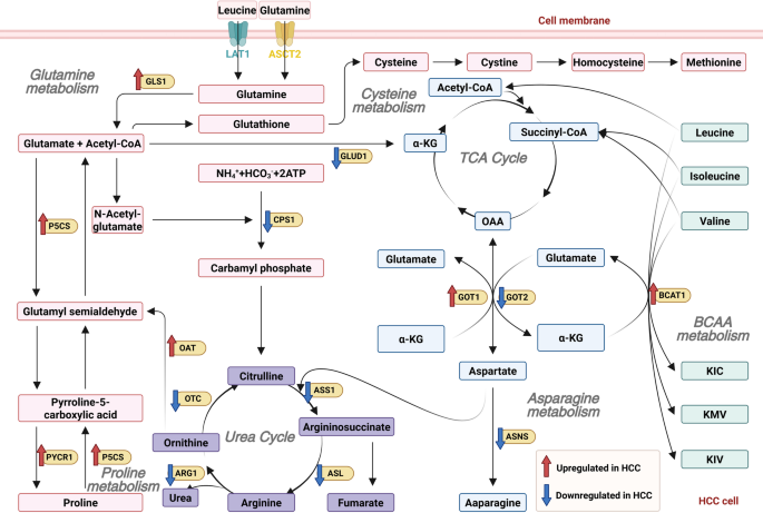 结果解读:氨基酸代谢重编程为肝癌细胞提供氮源及抗氧化物质,参与调控铁死亡、免疫逃逸等过程。文中Figure 5展示了氨基酸代谢重编程的关键通路(