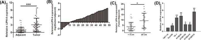 Biomarker定位:本研究涉及的Biomarker为长链非编码RNA LIPH-4,作为ESCC的预后Biomarker,筛选及验证逻辑为“芯片筛选异常表达lncRNA→临床样本qRT-PCR验证→预后关联分析→细胞及动物实验验证功能→机制解析”,形成完整的“筛选-验证-功能-机制”链条。