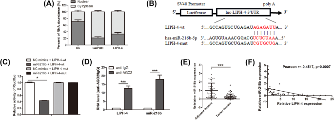 方法细节:采用PARIS Kit分离KYSE510细胞的细胞质和细胞核组分,qRT-PCR检测LIPH-4的分布(U6为核内对照,GAPDH为胞质对照);利用Starbase v2.0等生物信息学工具预测可能与LIPH-4结合的miRNA,重点关注抑癌miR-216b-5p。