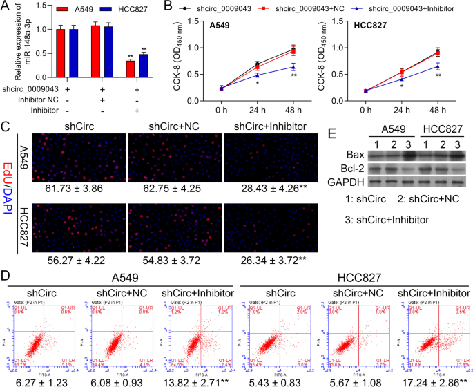 3.2 circ_0009043对NSCLC细胞增殖和凋亡的影响