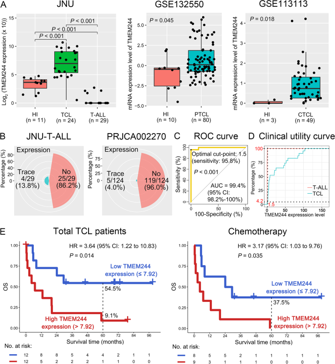 创新性:首次揭示TMEM244在多种TCL中的表达谱及预后意义,为TCL的精准诊断与预后分层提供了新的分子标志物。