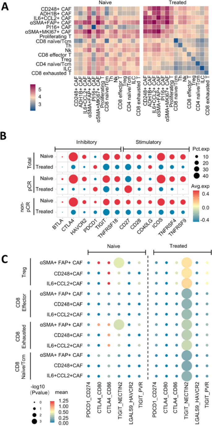 - 关键机制:CD248+mr-CAFs和IL6+CCL2+im-CAFs高表达NECTIN2,与T细胞表面TIGIT结合;non-pCR组中,Tregs与CAFs的TIGIT-NECTIN2相互作用显著高于pCR组(P<0.05),促进免疫抑制;