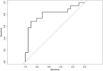 实验目的是评估miRNAs组合的诊断价值。方法细节:基于NGS Top15差异miRNAs,logistic lasso回归筛选最优组合,leave-one-out交叉验证。结果解读:7个miRNAs(miR-9-3p、miR-128-3p等)组合的分类准确率为0.75,ROC曲线下面积(AUC)为0.80。图片插入: