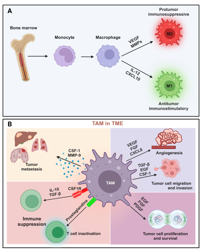 巨噬细胞是肿瘤微环境(Tumor Microenvironment, TME)中最核心的免疫细胞群,分为促瘤表型(M2型肿瘤相关巨噬细胞,Tumor-Associated Macrophages, TAMs)和抗肿瘤表型(M1型)。TAMs通过分泌血管内皮生长因子(VEGF)、基质金属蛋白酶(MMPs)等促瘤因子,促进肿瘤血管生成、转移,并抑制CD8⁺ T细胞功能,与患者预后不良、免疫治疗(如PD-1抑制剂)耐药密切相关。传统研究依赖分子生物学(如qRT-PCR)或组织学(如免疫组化)方法,仅能静态分析巨噬细胞的表型,无法实时追踪其在体内的动态变化。