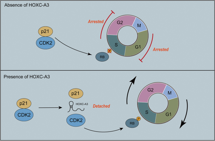 - 功能关联:HOXC-AS3通过与CDK2相互作用,减少CDK2与p21的结合,促进Rb磷酸化,从而推动细胞周期从G1期向S期转换,最终促进HCC细胞增殖。