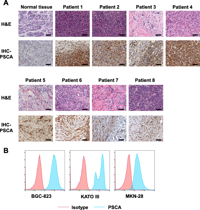 本研究的Biomarker为前列腺干细胞抗原(PSCA),是一种GPI锚定的细胞表面蛋白,通过“组织/细胞系表达验证→CAR-T细胞功能验证”的逻辑,确证其作为胃癌CAR-T治疗靶点的可行性。