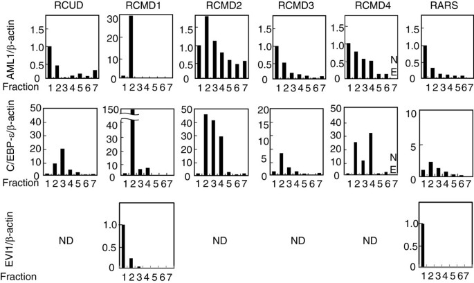 核心成果提炼:本研究首次发现,MDS患者中粒细胞生成调控基因(AML1、C/EBP-ε)的表达峰位显著提前(C/EBP-ε从健康人的F4提前至F2/F3,AML1从F1提前至F2),这种时间异常诱导是MDS造血细胞分化缺陷的分子标志。创新性在于,通过精细分馏方法揭示了传统方法无法检测的基因表达异常——仅分析CD34⁺或三组分的研究,无法捕捉到调控基因的时间表达变化。统计学结果显示,6例患者中所有病例的C/EBP-ε峰位异常(n=6),2例AML1峰位异常(n=2),结果具有一致性(文献未提及具体P值,但趋势明确)。