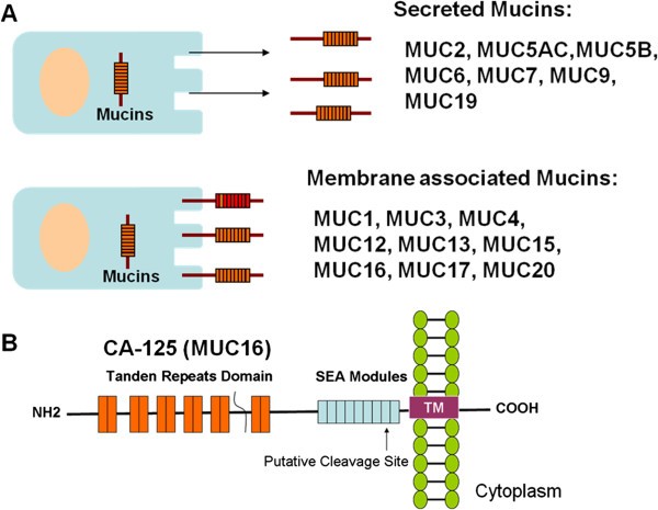 方法细节:回顾分子生物学研究(如MUC16基因克隆、CA-125蛋白结构解析)及临床研究(卵巢癌患者的血清CA-125检测),其中Yin等通过分子克隆明确MUC16基因编码CA-125,Bafna等解析了CA-125的糖蛋白结构。