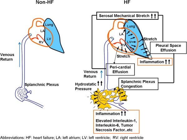 推测:CA-125的升高可能与HF中的充血和炎症形成恶性循环——充血导致炎症激活,炎症进一步促进CA-125分泌,需动物实验(如HF小鼠模型)验证这一循环机制。