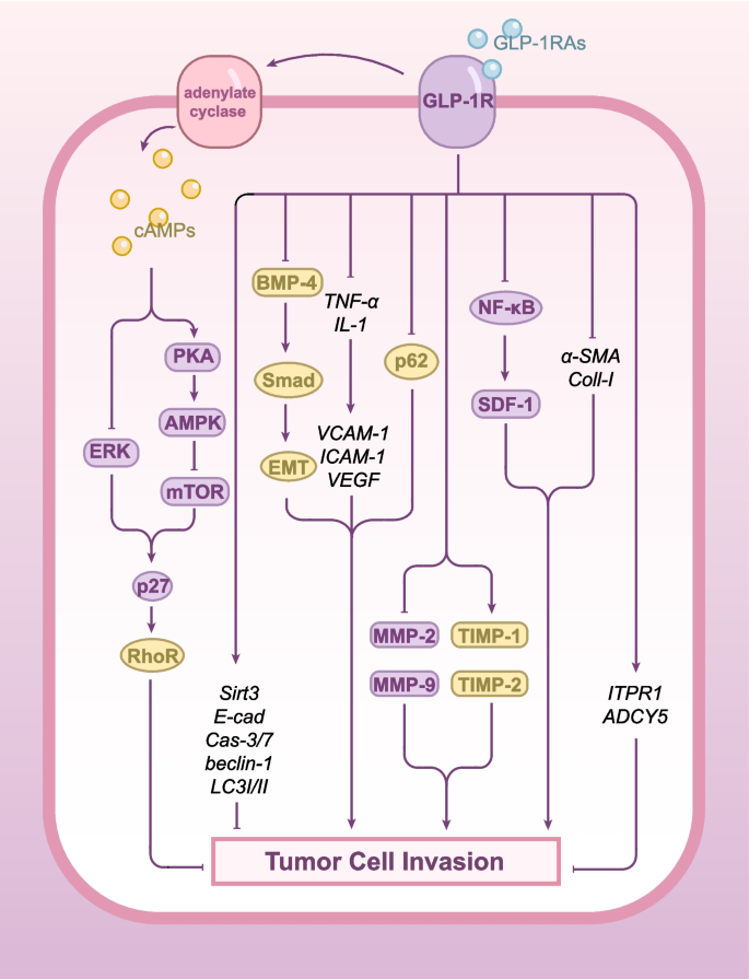 (图2:GLP-1RAs抑制肿瘤迁移侵袭的机制)。