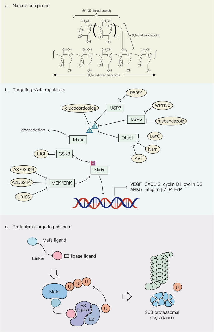 产品关联:文献提及MEK抑制剂(AS703026)、GSK3抑制剂(LiCl),但未明确品牌;领域常规使用这些试剂进行Maf靶向治疗研究。