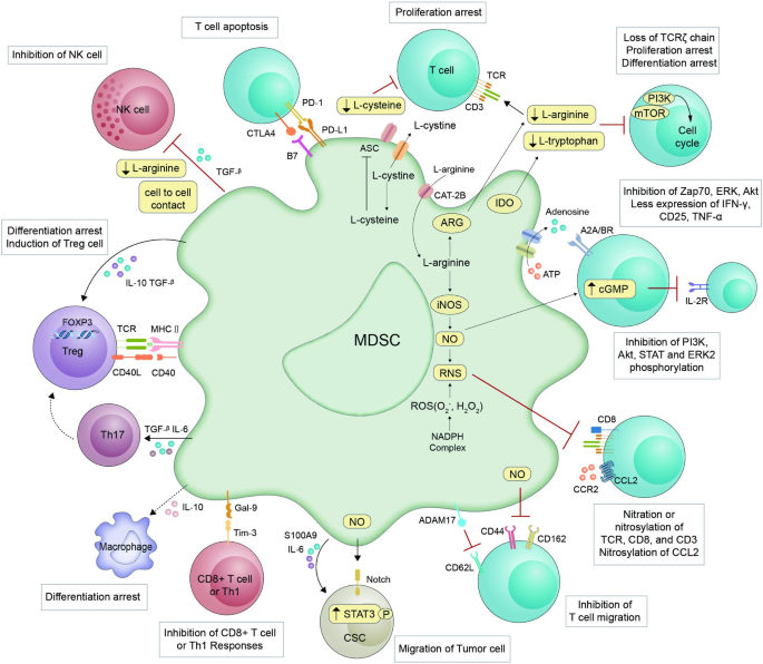 综述目的:明确MDSCs的起源、亚群及免疫抑制机制。