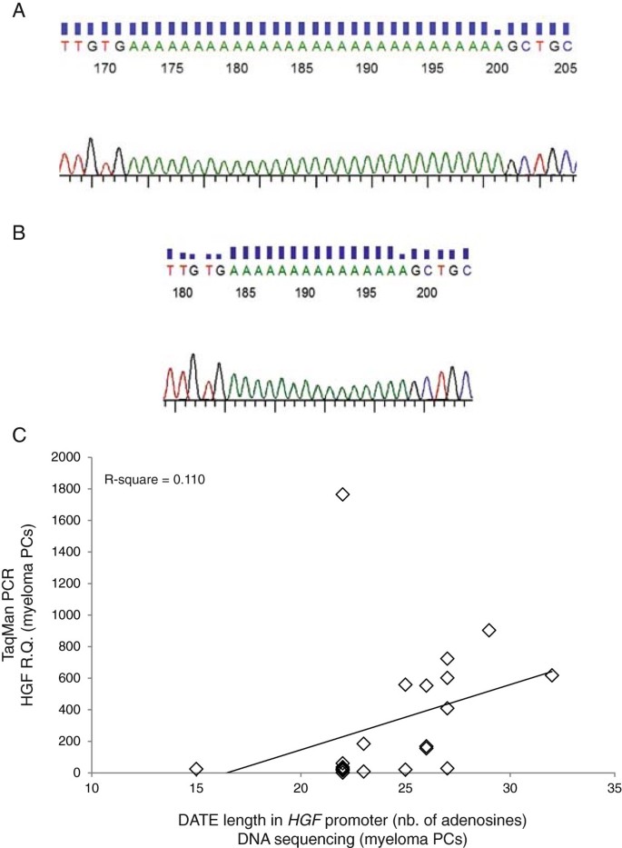 方法细节:对24例MM患者CD138+细胞行荧光原位杂交(fluorescence in situ hybridization, FISH)检测HGF基因拷贝数;选取5例低血清HGF、7例高血清HGF患者,用Stratagene PfuUltra II Fusion HS DNA Polymerase扩增HGF启动子区域,Applied Biosystems BigDye Terminator v1.1测序试剂盒测序。