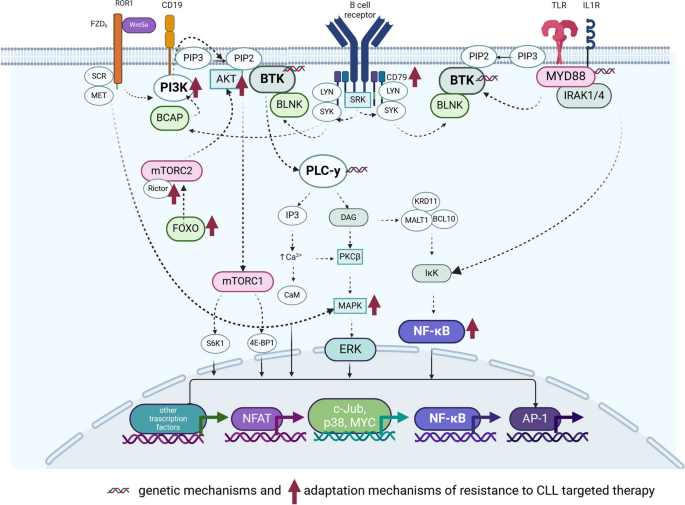 Fig.2 展示BCR、ROR1、TLR等通路的相互作用及耐药机制: