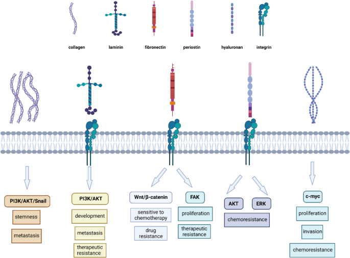 作者通过“临床样本关联分析→体内外功能验证→临床前模型验证”的逻辑,筛选出肿瘤特异性或与预后/耐药相关的ECM成分,例如: