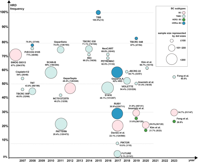 HRD score>42的TNBC患者,铂类化疗的病理完全缓解率(pCR)达50%以上,显著高于HRD阴性患者(20%)。
