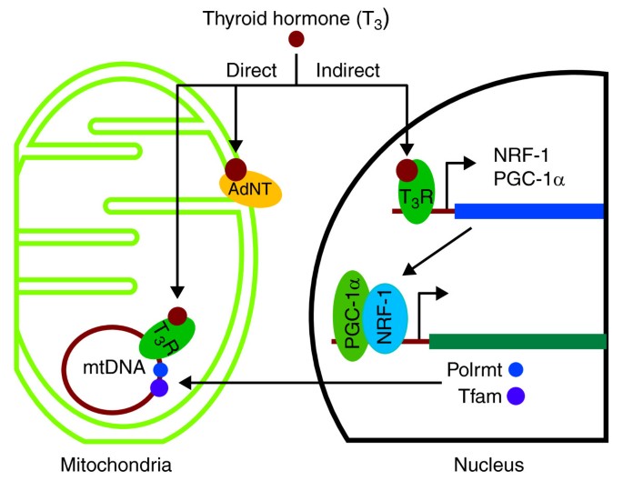 甲状腺激素调控线粒体功能的直接与间接途径(Figure 3):