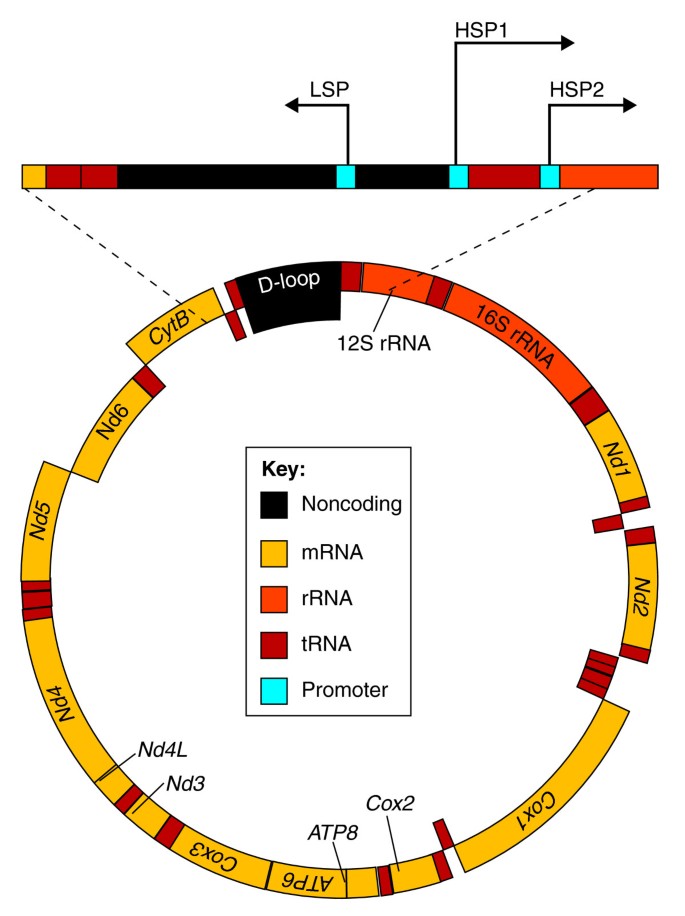哺乳动物线粒体基因组的组织(Figure 1):