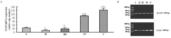 3.2 体内CCSP与PLA2 mRNA表达检测