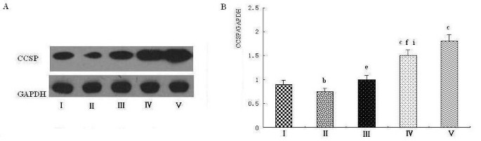 (图7:PD对大鼠肺组织CCSP蛋白表达的影响,蛋白与mRNA趋势一致)