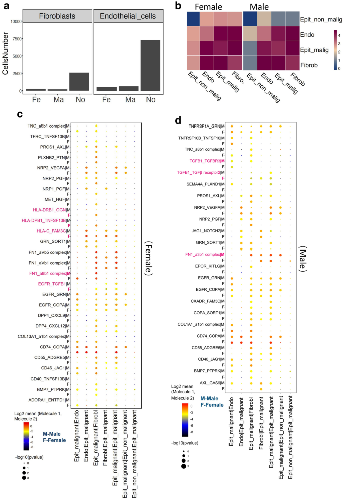 实验目的是解析恶性上皮细胞与成纤维细胞、内皮细胞的性别特异性互作模式。