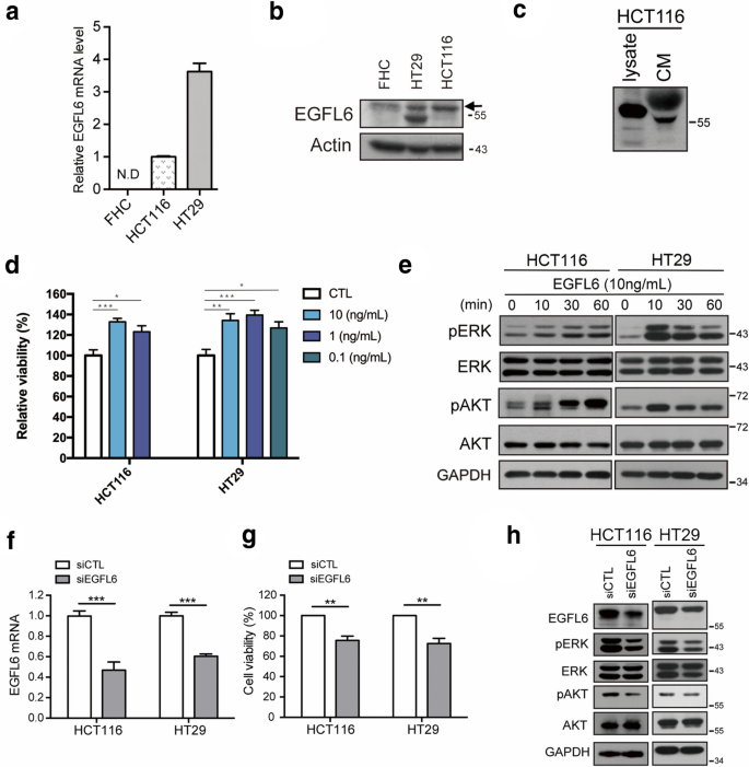 产品关联:重组EGFL6蛋白购自Sino Biological;siRNA购自Thermo Fisher Scientific;Western blot常规使用Cell Signaling Technology的ERK/AKT抗体。