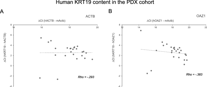 数据方面:25份PDX样本中,EPCAM的表达水平在不同样本中差异显著(图2),且与人类管家基因(ACTB、OAZ1)无显著相关性(p>0.05);KRT19的表达模式与EPCAM类似,同样无显著相关性。