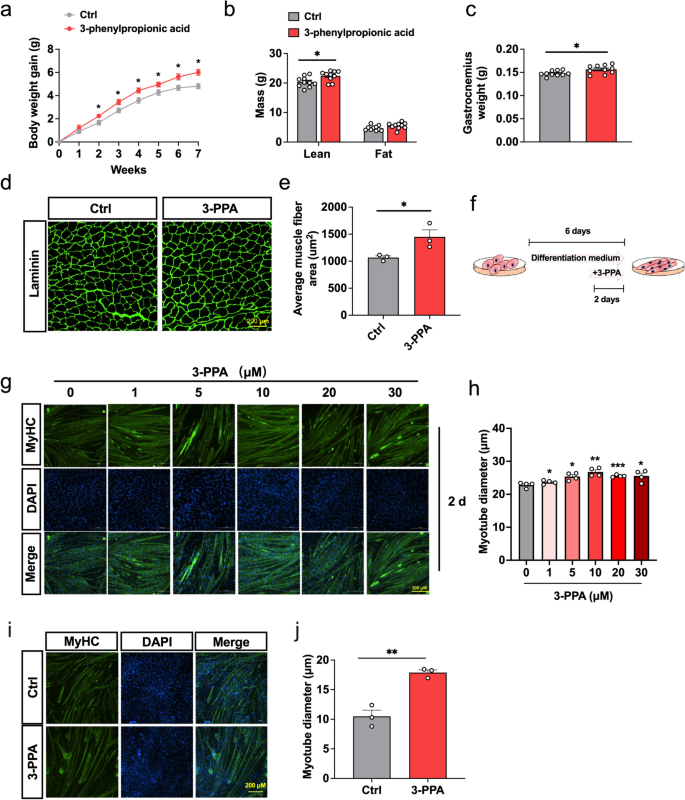 本研究首次揭示了3-PPA对骨骼肌的功能及机制,为肠道微生物代谢物调控骨骼肌发育提供了新靶点,具有重要的基础研究和临床转化价值。