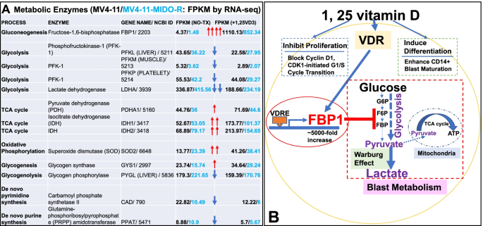 急性髓系白血病(AML)是成人最常见的急性白血病类型,尽管诊疗技术不断进步,但其临床困境仍突出——约50%患者会在诱导化疗后复发,5年总体生存率仅29%,复发难治性AML是改善预后的关键障碍。近年来,代谢重编程被证实是AML细胞的核心特征之一,其中“Warburg效应”(即使在有氧条件下仍依赖糖酵解供能)尤为典型,不仅为AML细胞提供快速能量,还与化疗耐药、不良预后密切相关。果糖-1,6-二磷酸酶1(FBP1)作为糖异生途径的限速酶,可通过水解果糖-1,6-二磷酸逆向抑制糖酵解,在实体瘤中发挥肿瘤抑制作用,但FBP1在AML中的功能及调控机制尚未明确。此外,维生素D(1,25VD3)作为经典的抗白血病分子,已知其可诱导AML细胞分化、抑制增殖,但此前研究未关注其对代谢通路的调控作用。
