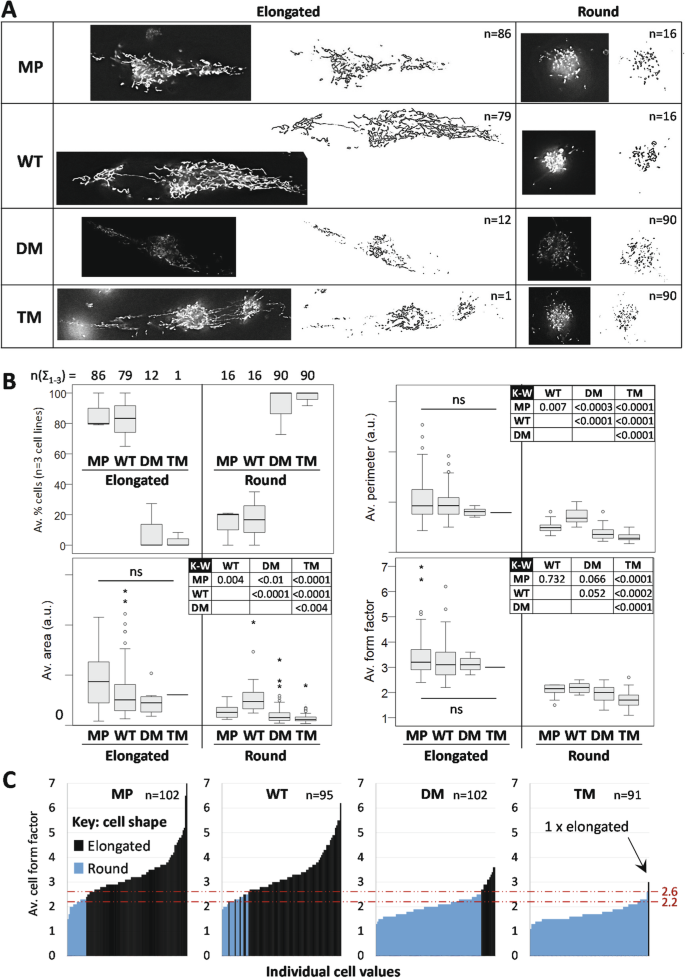 实验目的是探究PGRMC1磷酸化突变对细胞形态、迁移及侵袭的影响。方法:① 形态分析:细胞经甲醛固定、甲醇透化后,用FITC-抗HA抗体染色, confocal显微镜观察(DAPI染核、DIC模式);② 迁移实验:单层细胞划痕后,用ROCK抑制剂(Y-27632)或DMSO处理,观察36小时迁移情况;③ 侵袭实验:细胞接种Matrigel包被的Transwell小室,24小时后计数穿膜细胞。结果:① DM/TM细胞呈现圆形形态(WT为长梭形),ROCK抑制剂可逆转该表型;② 划痕实验中,DM细胞迁移数较WT高60%(n=12,ANOVA post-hoc Dunnet’s T3,P<0.001);③ Transwell实验中,DM细胞侵袭数较WT低50%(n=30,Kruskal-Wallis,P<0.001)。实验所用关键产品:FITC-抗HA抗体(Sigma-Aldrich,F8521)、ROCK抑制剂Y-27632(Abcam,ab120129)。