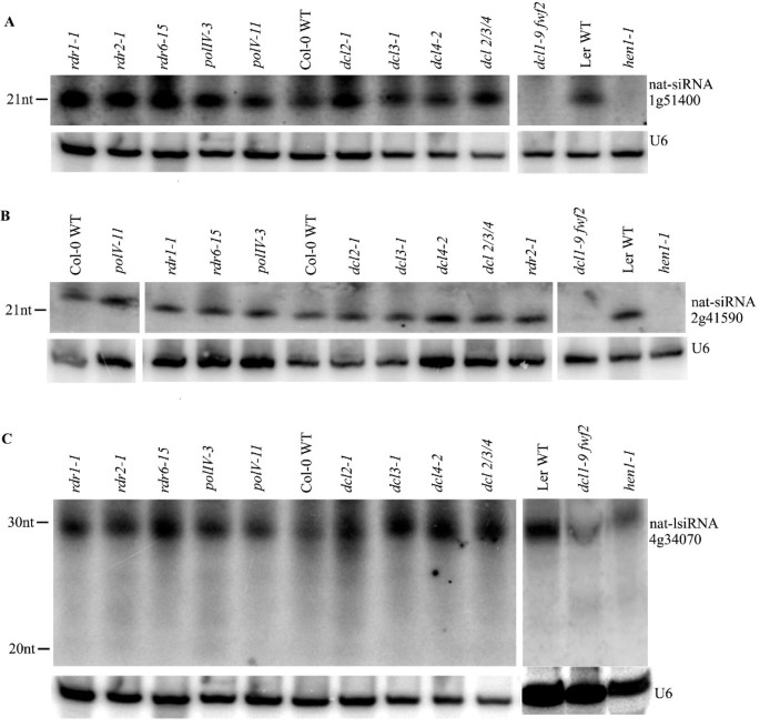 实验目的:解析nat-siRNAs生物发生依赖的分子元件(DCL、RDR、PolIV等)。
