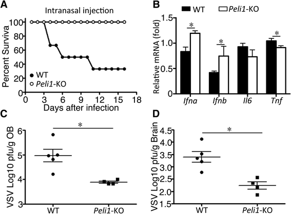 实验目的:在体内水平验证Peli1对CNS中IFN-β产生的负调控作用。