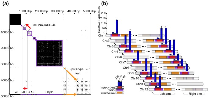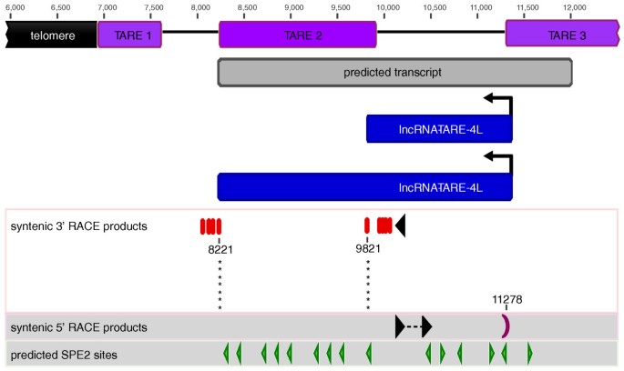 结果解读:cDNA末端快速扩增结果显示,该家族存在两种主要转录本,长度分别约为1.5kb和3.1kb,均从端粒相关重复元件3边界向端粒方向转录,终止位点分别位于端粒相关重复元件2元件之前和之后;转录区域富含SPE2基序,该基序也存在于upsB型var基因的启动子中,且lncRNA-TARE-4L与PfSip2的表达高度相关,PfSip2在lncRNA-TARE表达前上调,提示其可能参与该家族的转录调控。