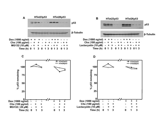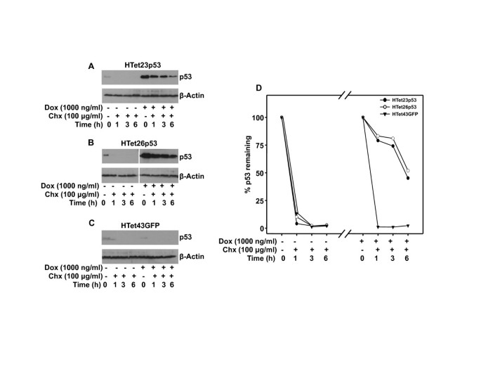 实验所用关键产品:Sigma的多西环素(Dox)、环己酰亚胺(Chx),BD的Tet系统专用血清,Santa Cruz Biotechnology的p53抗体、β-微管蛋白抗体,Cell Signaling Technology的Ser46磷酸化p53抗体。